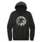 Stay cozy and mysterious in this unique hoodie featuring a silhouette of Bigfoot/Sasquatch snowboarding over a full moon backdrop with pine trees. Perfect for lovers of the unknown and outdoor enthusiasts. Stand out from the crowd with this one-of-a-kind design!